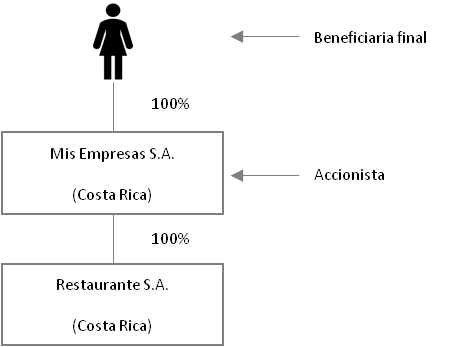 Legalmente, el accionista de Restaurante S.A. es Mis Empresas S.A., pero la beneficiaria final (entiéndase quien al final es la dueña de todo) es Isabel.